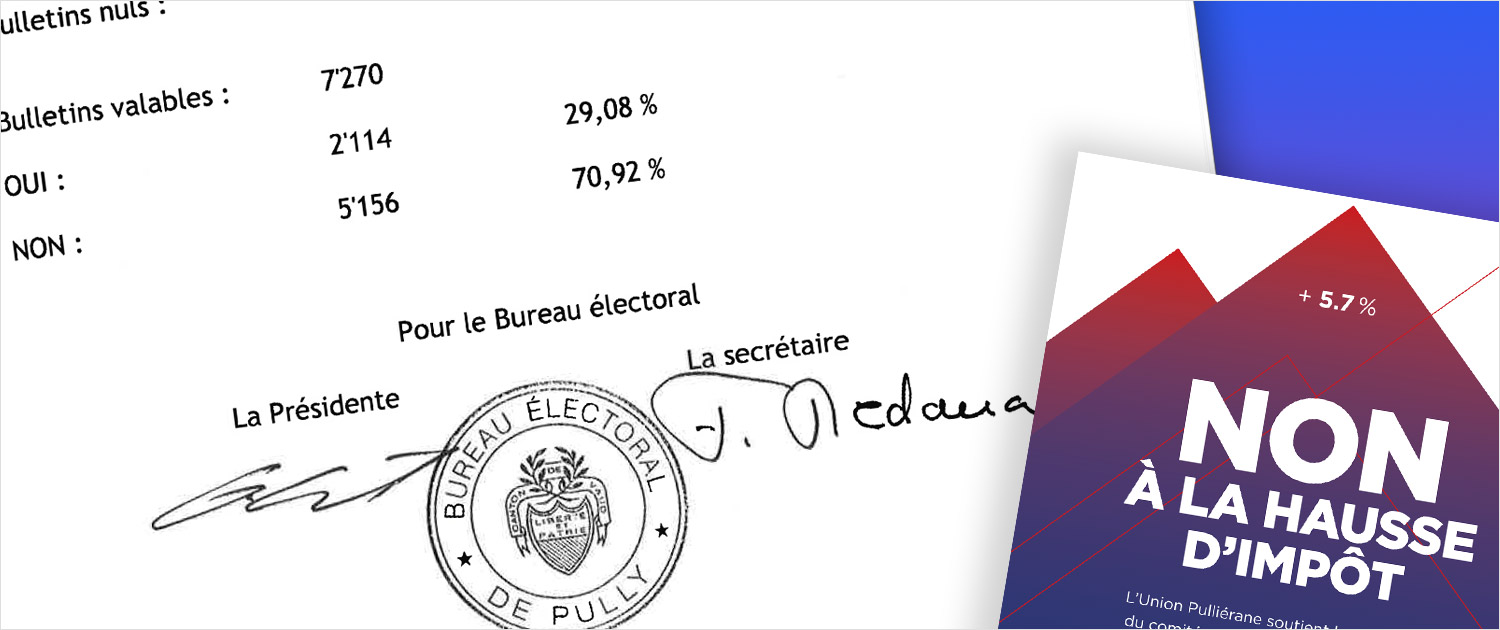 Alors qu’elle était le seul groupe politique du Conseil Communal à avoir refusé la hausse d’impôt face à la Municipalité, L’UP se réjouit de ce score élevé et remercie la population de son soutien marqué lors de ce référendum, initié par deux de ses membres ainsi que par des élus PLR. Si une ponction supplémentaire a été évitée pour les habitant-e-s, les incertitudes financières demeurent toutefois bien réelles à l’échelle de la commune.